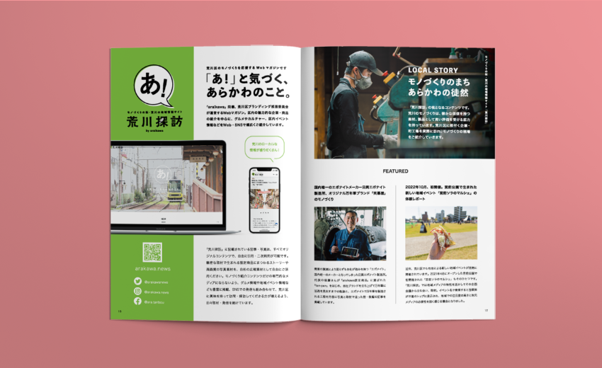 モノづくりの街・荒川区の魅力的な企業・商品の紹介を中心に、グルメやカルチャー、区内のイベント情報などを幅広くご紹介しています。「荒川探訪」の詳細はこちらのポートフォリオをご覧ください。